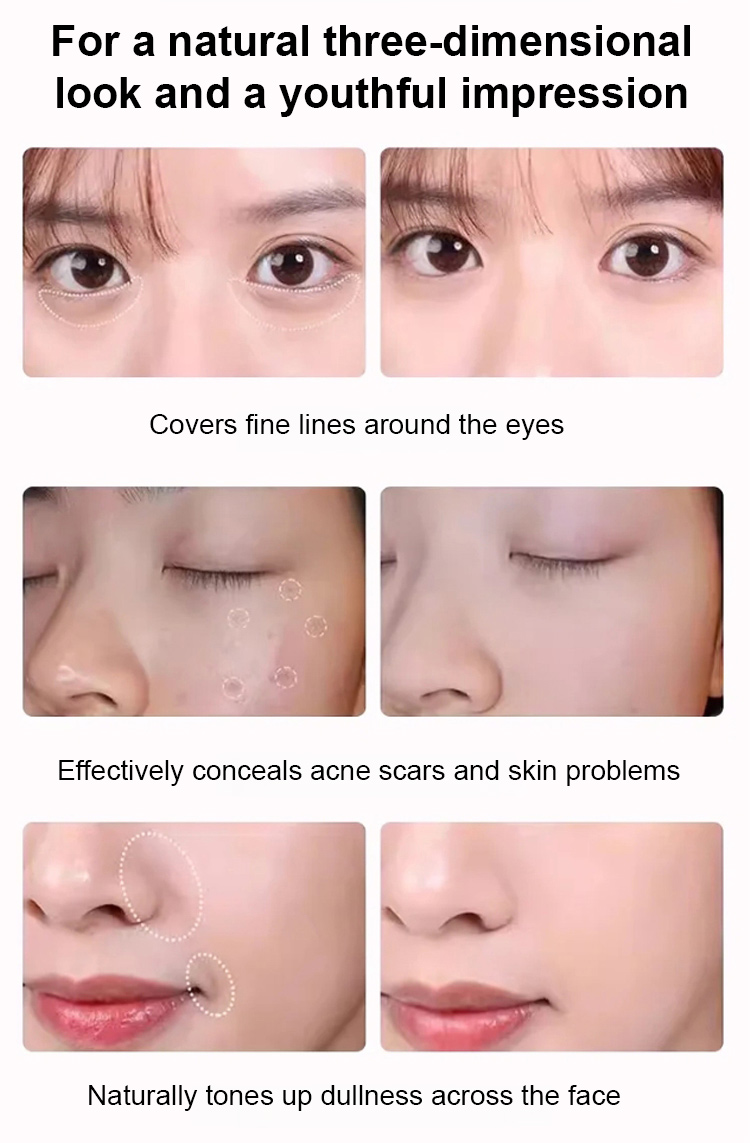 【💗Korean Celebrity Makeup Look】✅Smooths facial contours and dark circles in 1 second👩Looks 20 years younger, blends naturally with the skin, easily conceals imperfections😊Creamy cream foundation texture, refreshing and non-sticky