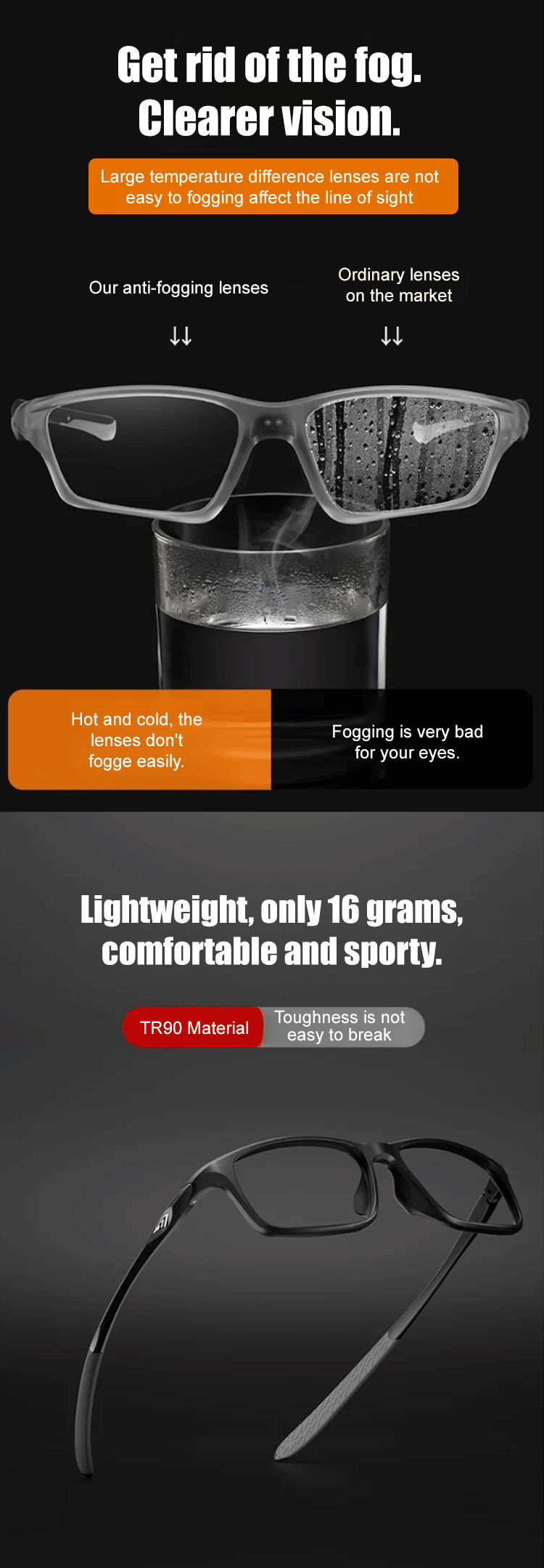 ✅99.99% blue light filtering, effectively reducing eye fatigue and protecting your eyes. 💎German diamond lens technology: anti-slip, shatterproof, anti-fog, with a lifespan of up to 30 years. 🏃Suitable for various occasions such as running, golf, and office work.