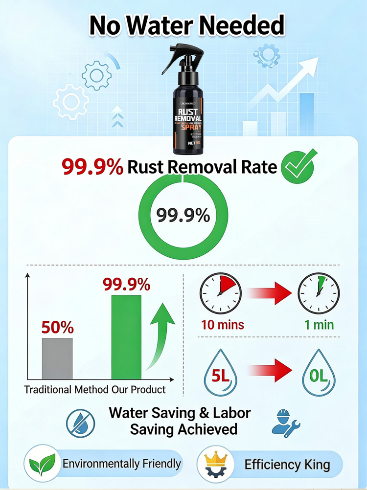 German and American Jointly Developed Rust Removal Spray, 3-Second Rapid Rust Removal (99.9% Descaling Rate), Forms a Protective Layer Without Wiping or Washing, Prevents Rust for 1 Year