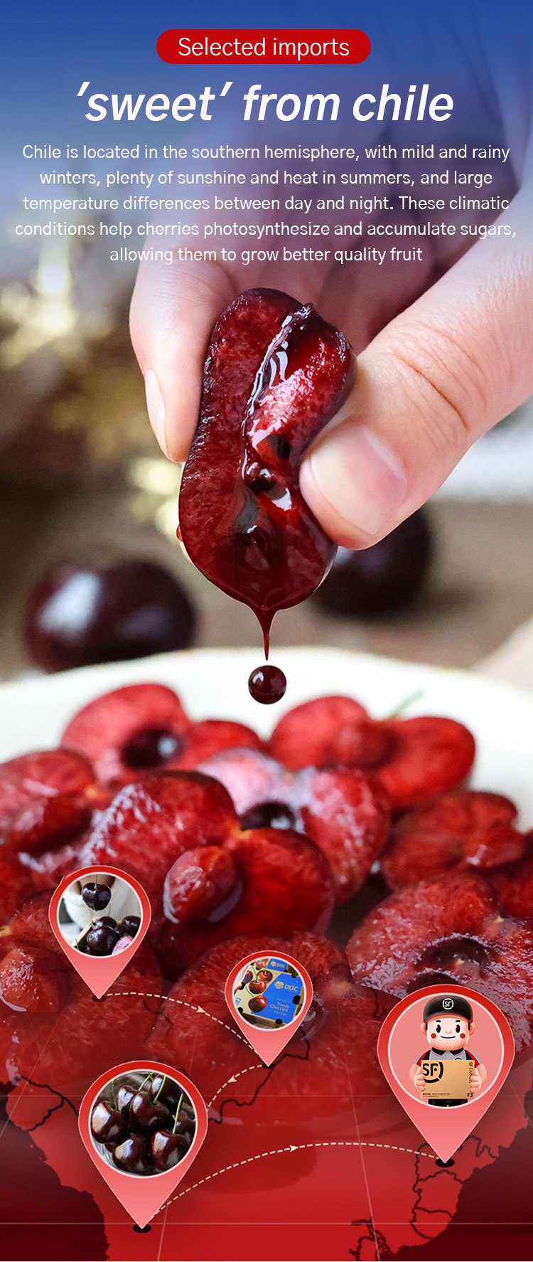 🍒🍒🍒Chilean imported 4J sweet cherry variety, premium quality ✅ Survival rate over 99%, bears fruit in the same year, thin-skinned, thick-fleshed, juicy, crisp, and sweet